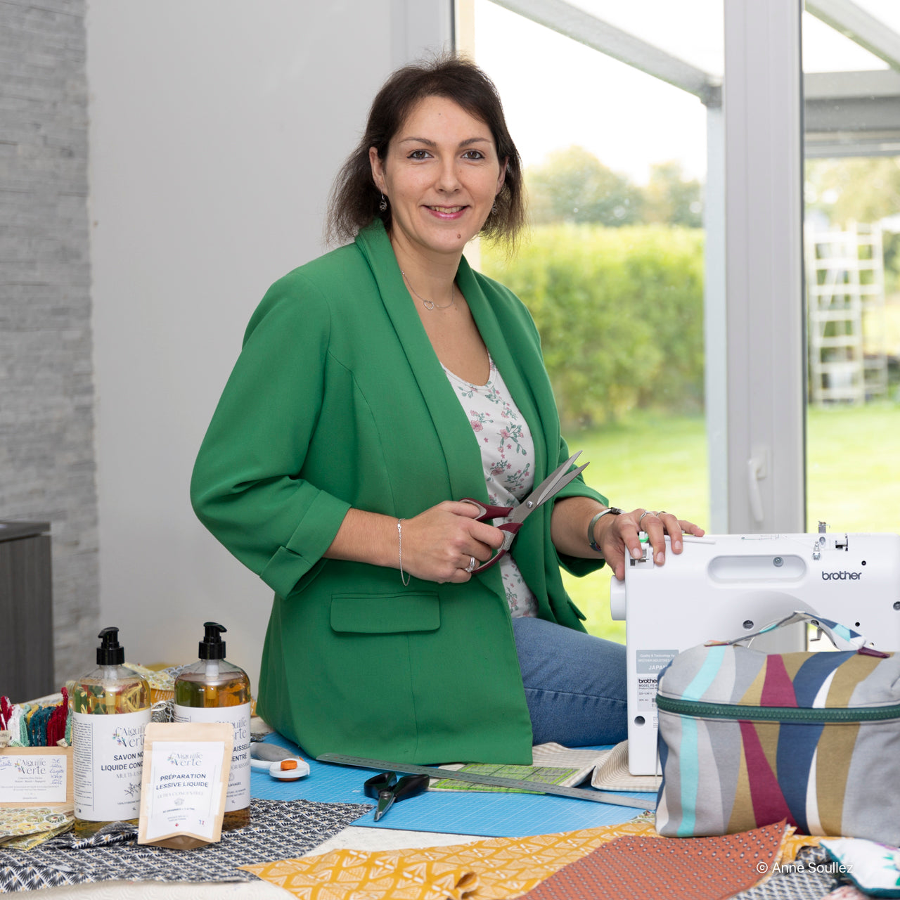 Je suis Laure Lefebvre créatrice de la marque L’Aiguille Verte, passionnée de couture zéro déchet je suis aussi une femme et une maman de 2 jeunes enfants. Je vis en Normandie, et plus précisément dans le département de l’Eure (27).
